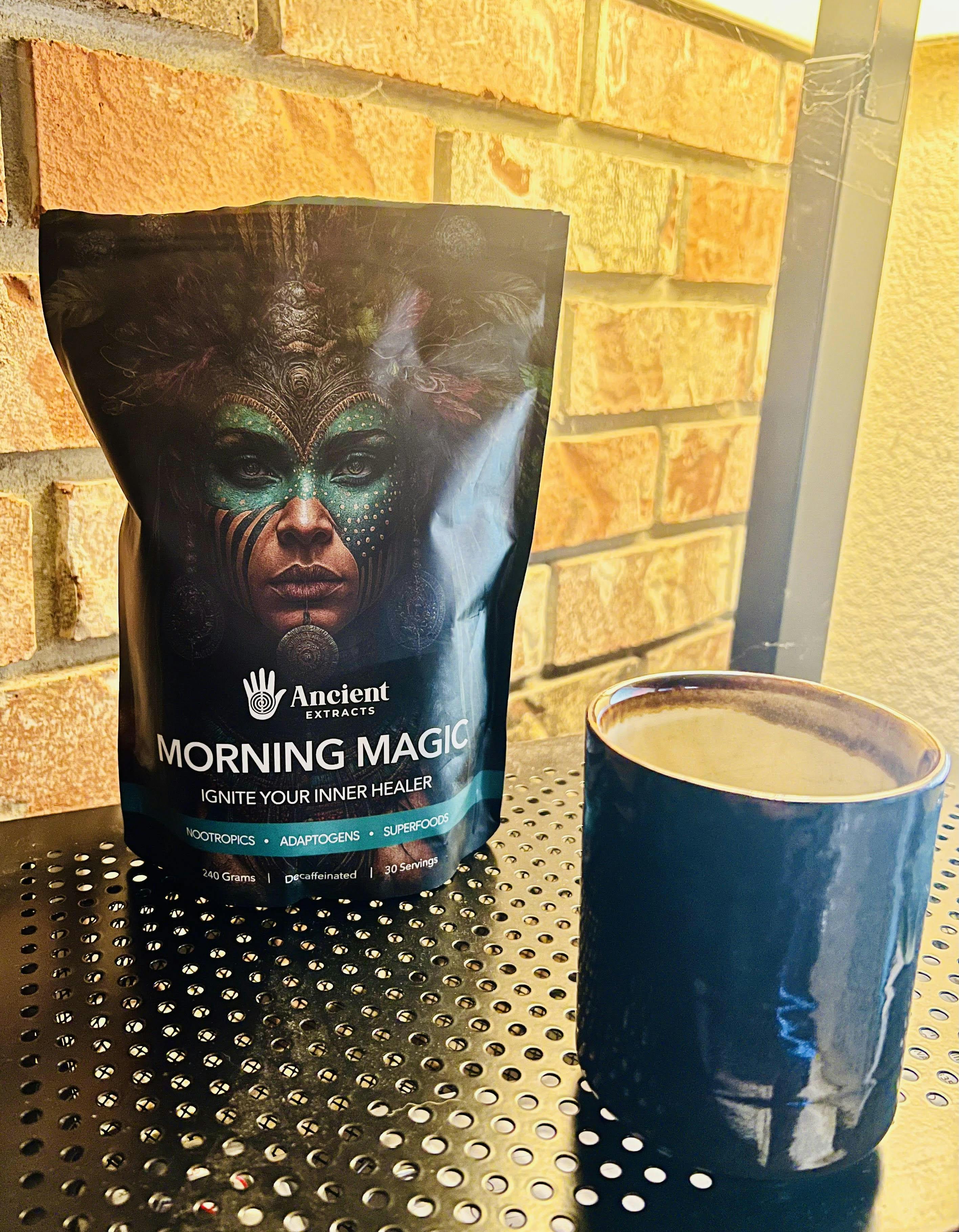 Ancient Extracts Morning Magic Decaf Mushroom Coffee Alternative is a 100% natural coffee alternative made from a blend of plants and root extracts.